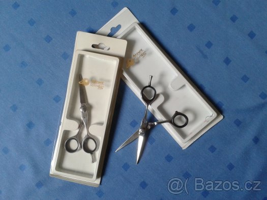 Prodám nové profesionální kadeřnické nůžky, německá ocel ,,Solingen,,. Klouzavý střih, samobrusné, lehké do ruky. Velké množství, při větším odběru sleva .Dvě délky černostříbrné, zlatostříbrné. č. 5, č. 5,5. Možno zaslat i poštou.