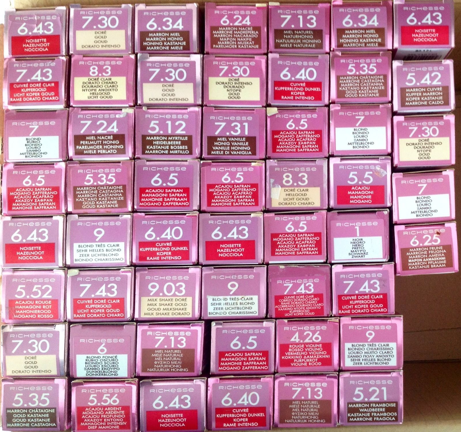 Prodám 136 ks kadeřnických barev - přelivů LOREAL RICHESSE de DIACOLOR. Prodám za 8100Kč, což vychází v přepočtu na 59.55 Kč za krabičku. Úspora více jak 9000Kč. Při rychlém jednání poštovné zdarma. V mých inzerátech nabízím i jiný kadeřnický materiál.